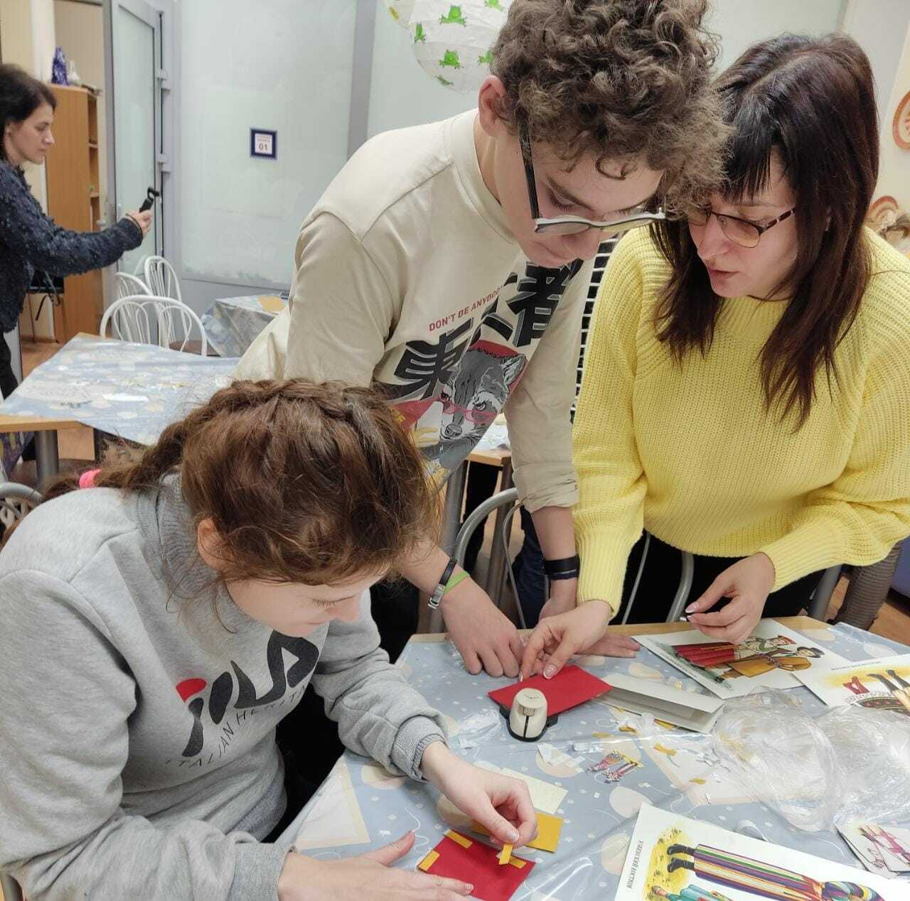 Ребята запаслись материалами для творчества – цветной бумагой, карандашами и фломастерами, чтобы с помощью волонтёров и педагогов сделать оригинальные открытки с изображением пары в национальных костюмах. Каждый выбрал тот образ, который понравился больше всего, украсив свой костюм оригинальными украшениями и головными уборами.