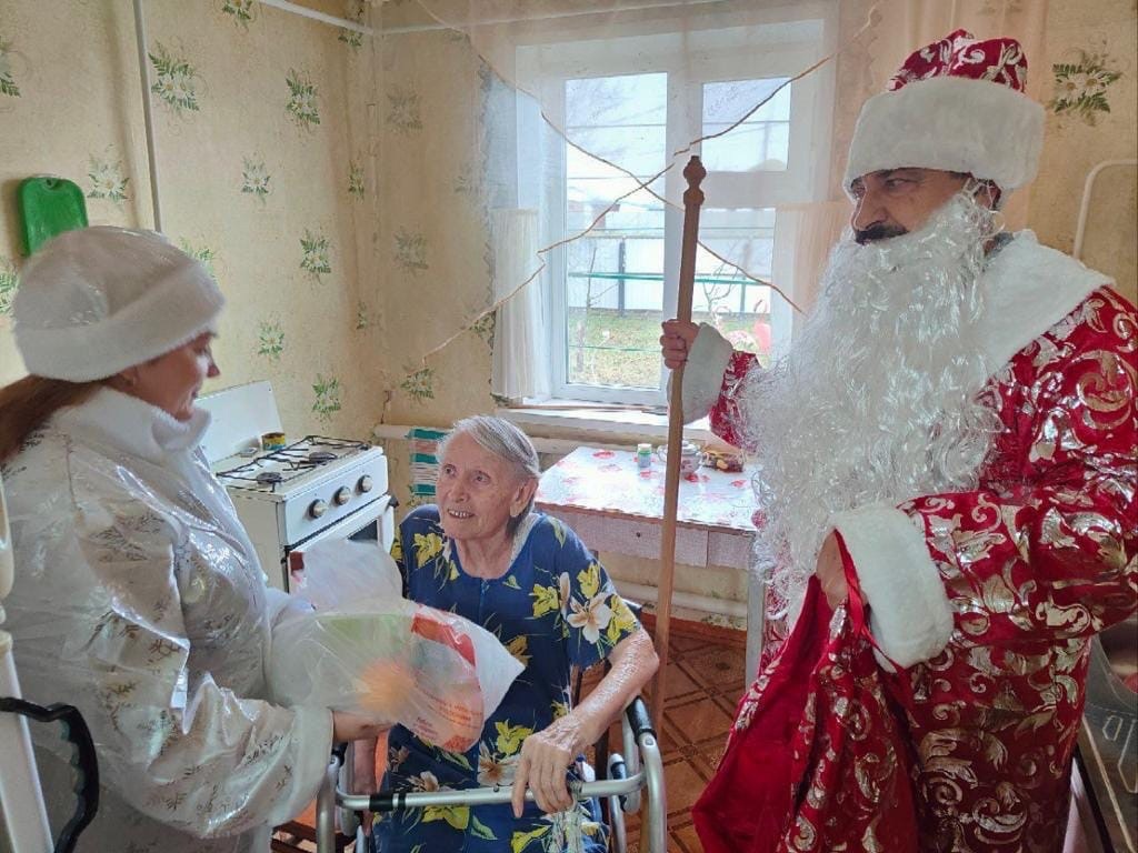 Лидия Ивановна давно не работает, праздники отмечает скромно – на маленькую пенсию сильно не разгуляешься, да и в гости на слабых ногах и ходунках не пойдешь. И каково же было ее удивление, когда перед Новым годом к ней самой пришли Дед Мороз и Снегурочка, прямо как в далеком детстве! И само собой, не с пустыми руками – сладкие гостинцы от фонда «Старость в радость» дополнили праздничный стол.