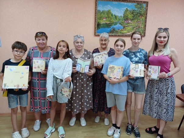 Три недели мы собирались в комплексном центре социального обслуживания в городе Новокуйбышевске Самарской области. Мы – это юные волонтеры добровольческого агентства «П.О.З.И.Т.И.В.» и члены волонтерской группы «Серебряные феи». Подростки знакомились с деятельностью фонда «Старость в радость», узнавали о проблемах пожилых людей и взрослых людей с инвалидностью. Серебряные волонтеры и пожилые люди, которые приходят на мастер-классы в КЦСОН, не упускали возможности поговорить с молодежью, порукодельничать вместе. Подростки проводили для них творческие мастер-классы, например, по изготовлению открыток в технике скрапбукинга – но и сами учились не меньше.