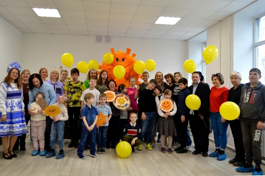 На входе в библиотеку «солнечных детей» и их родителей встречало Солнышко. Снимки с ним останутся в архиве каждой из семей, входящих в организацию.