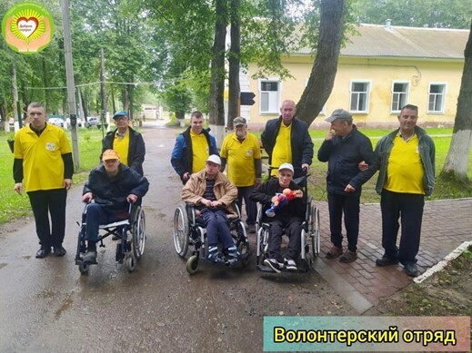 Мужчины в желтых футболках на фотографии – это участники волонтерской команды «Открытые сердца» из Нагорновского дома социального обслуживания Калужской области. Они гуляют с теми, кто без их помощи вообще не попал бы на свежий воздух. Польза от внутридомовых волонтеров и необходимость в них налицо – и сами добровольные помощники не сидят без дела и чувствуют себя нужными, и люди, которым они помогают, обретают надежную опору в виде своих же соседей, которые всегда рядом.