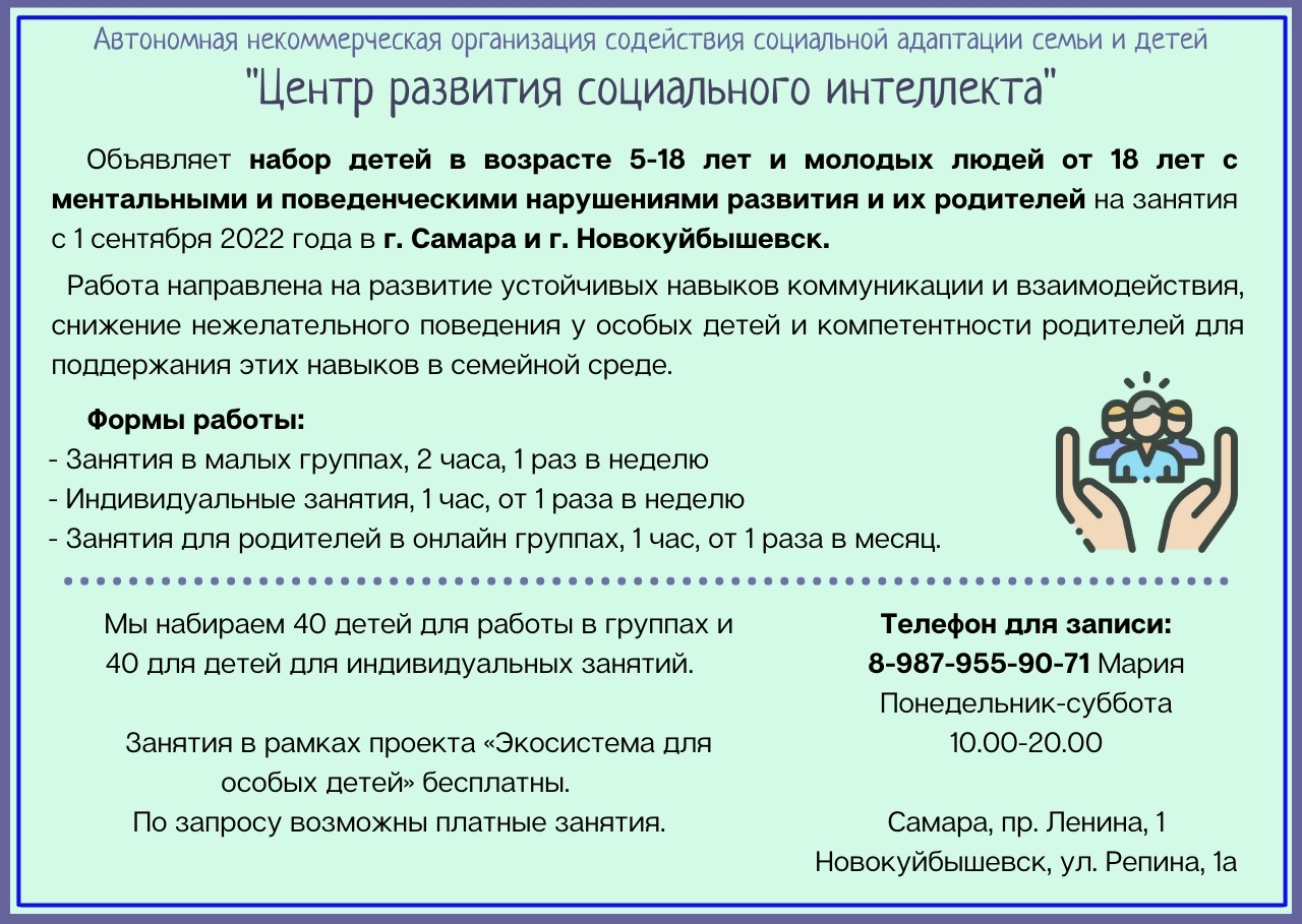 Наш Центр объявляет о наборе на занятия на ближайший учебный год. Как мы уже писали ранее - скорость звонка координатору не является определяющим фактором для попадания ребенка в тот или иной наш грантовый проект. О том, что является для нас приоритетом - в этом ролике. Просим Вас изучить информацию о нас и нашей работе - это займет очень мало времени, но значительно сбережет время звонка к нам с вопросами "А расскажите чем вы занимаетесь", "А чем Вы можете помочь моему ребенку". Ответы на эти вопросы есть на сайте. Семьи, ранее занимавшиеся у нас - мы тоже ждем от вас звонков, чтобы согласовать, что будем делать в этом учебном году.