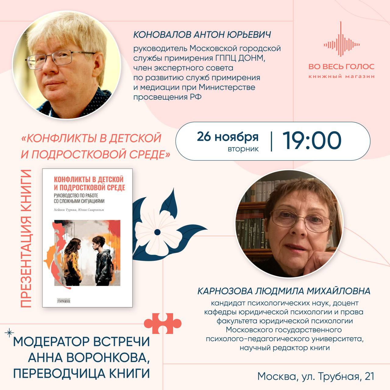 Приглашаем Вас на презентацию книги «Конфликты в детской и подростковой среде».
